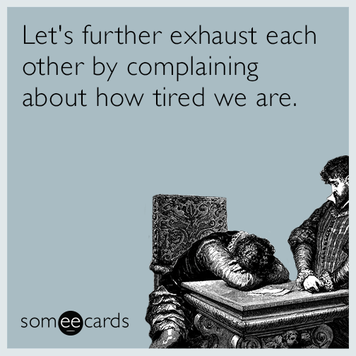 Let's further exhaust each other by complaining about how tired we are.