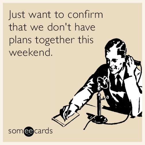 Just want to confirm that we don't have plans together this weekend.