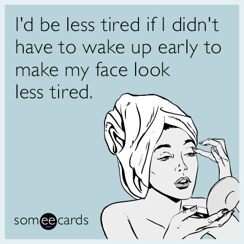 I'd be less tired if I didn't have to wake up early to make my face look less tired.