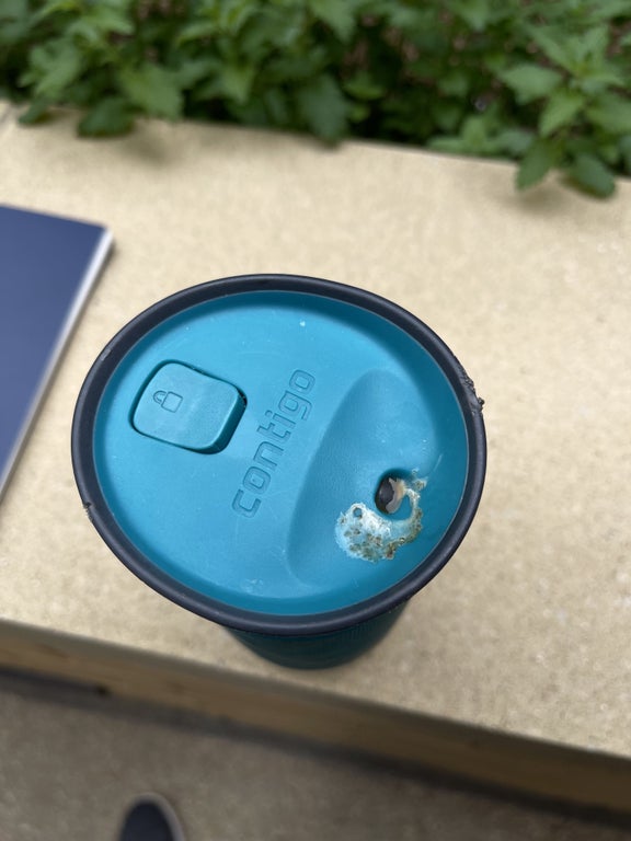Wellthatsucks: A bird crapped in the open mouth piece of my coffee