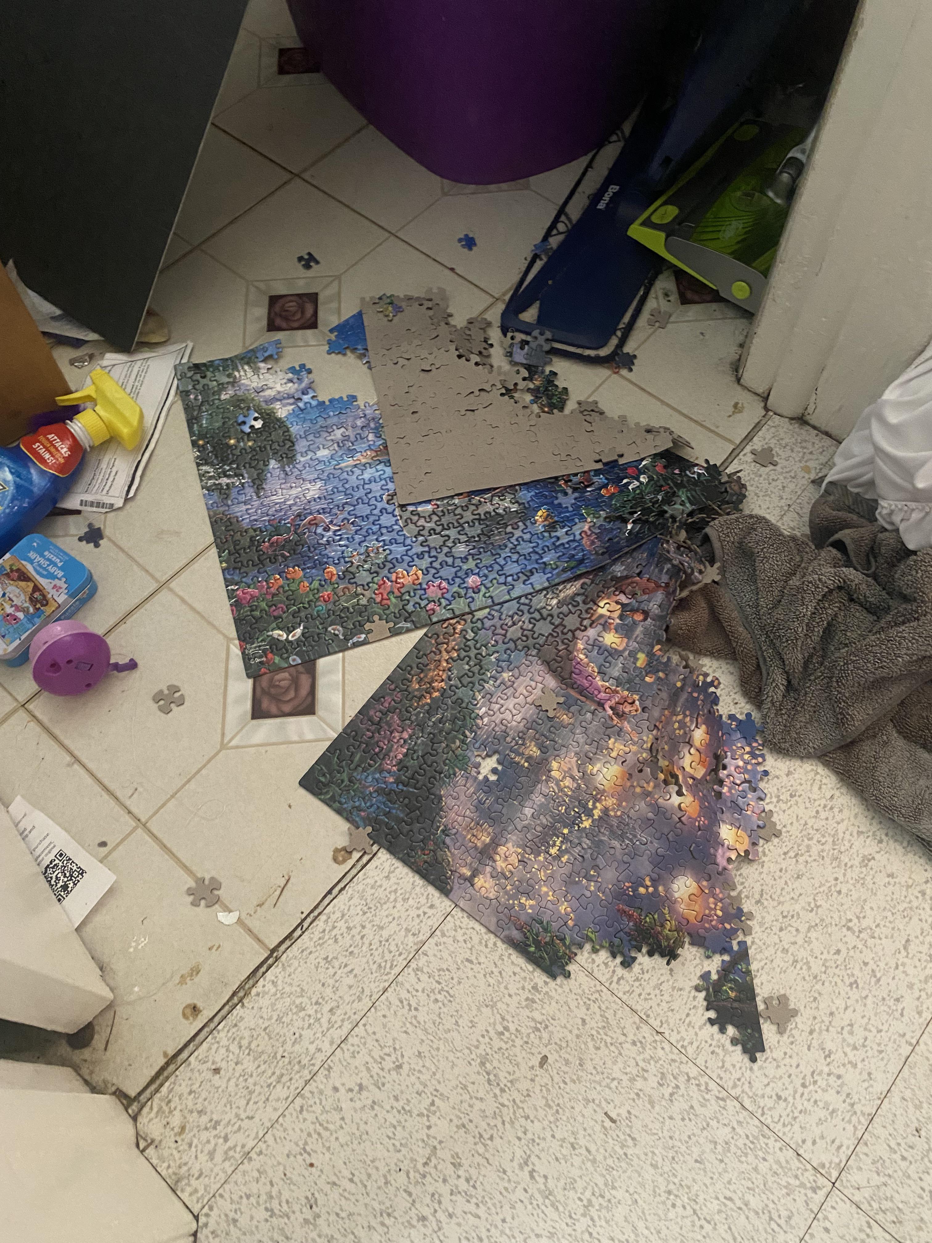 Wellthatsucks: Spin cycle on the washer started and roommate had a freshly completed puzzle perched atop, unbeknownst to me.