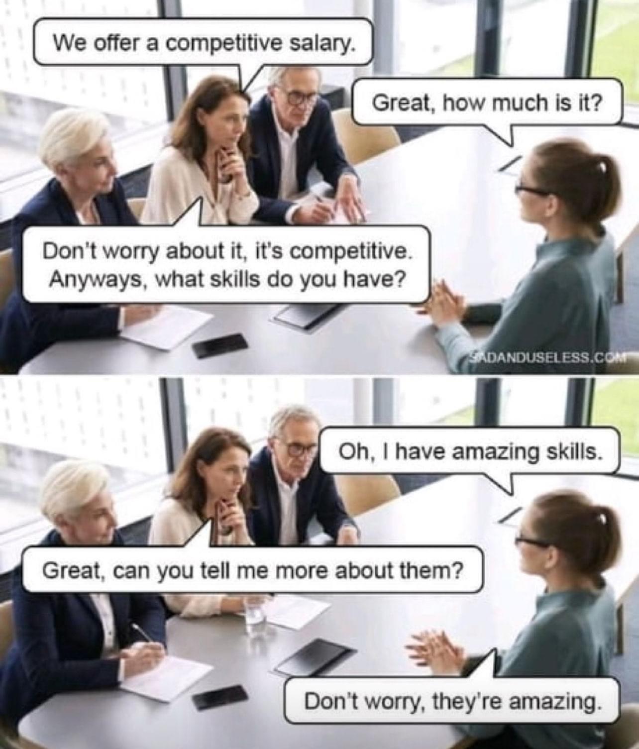 Funnymemes: Competitive Salary, Competitive Skills.