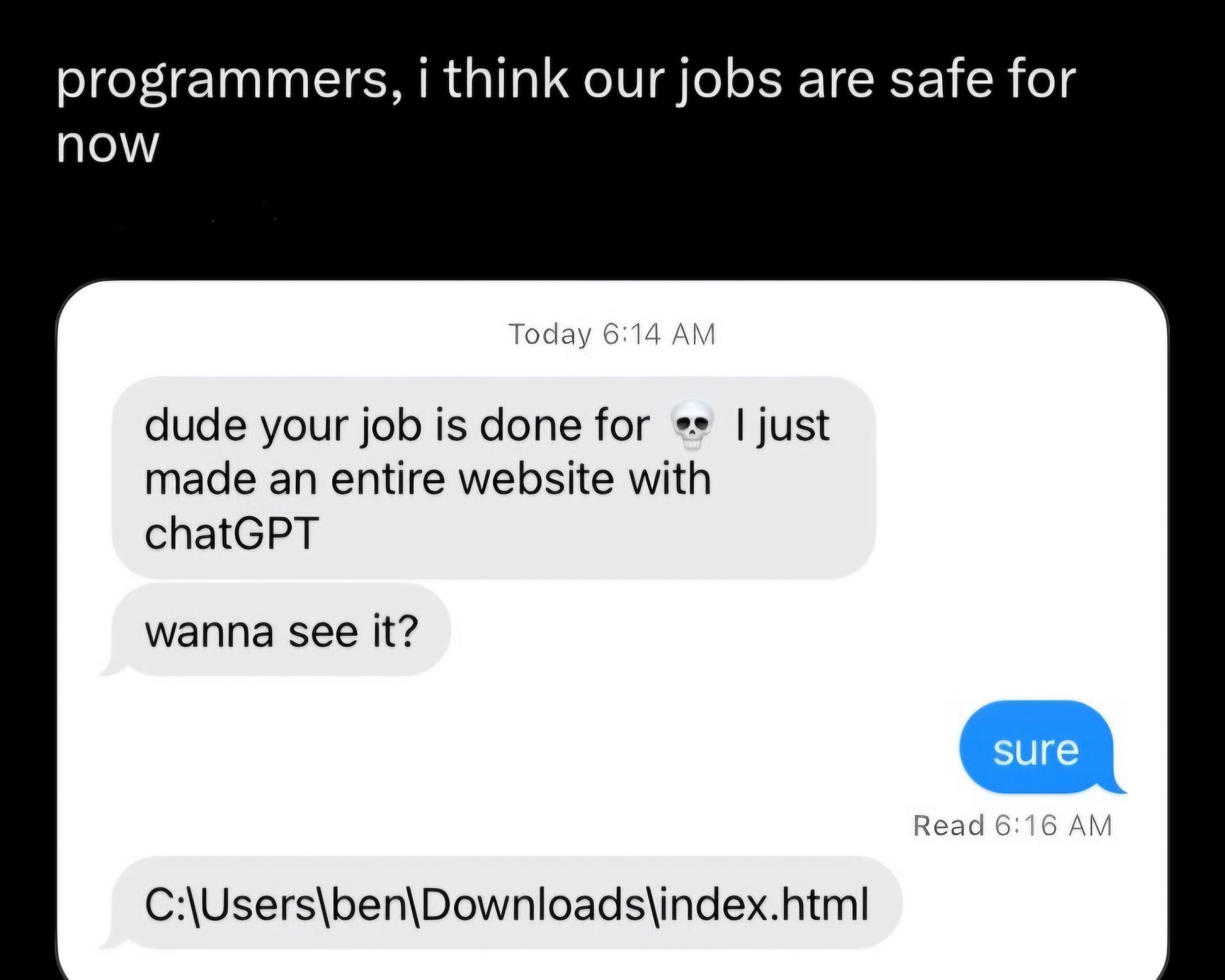 ProgrammerHumor: ourJobsAreSafeForNow